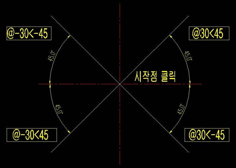 (3) 명령어 창에 @선 거리값< 각도 입력 엔터