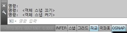 ※ OSNAP (객체스냅) 작동 ON / OFF 버튼은 F3 입니다.