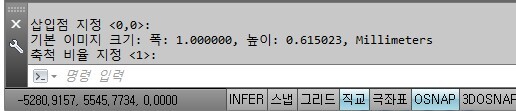 (5) 명령어 창에서 축척 비율 입력 후 엔터 합니다. (축척 비율 = 1 추천)