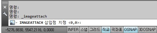 (3) 이미지 부착 창에서 아래와 같이 설정 후 확인 클릭 합니다. (축척 , 각도 필요 시 삽입 후 별도의 명령어로 변경 추천)