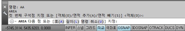 2. 명령어 창에 단축키 AA 입력 엔터. (면적 구하는 명령어 사용 방법)