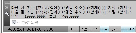 4.영역 (면적) 및 둘레 (총길이) 값이 계산 되면서 자동 종료