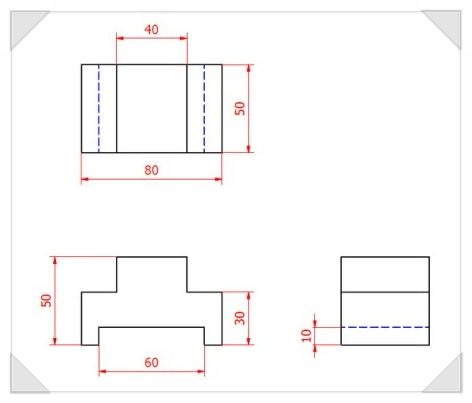 문제) 아래 3각법 도면을 보고 3D 작업을 완성하시오!!