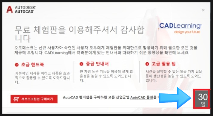 그래서 오늘은 CAD (오토캐드) 체험판으로 30일 무료 사용 할 수 있는 방법을 알려 드리겠습니다.