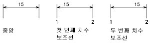 (1) 중심: 치수 문자를 치수 선의 중심에 배치