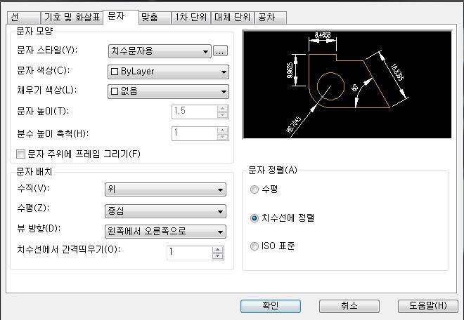 (2) 치수선에 정렬 : 문자를 치수 선에 정렬