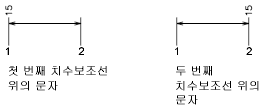 (2) 치수보조선 1: 치수 문자를 첫 번째 치수보조선의 왼쪽 정렬