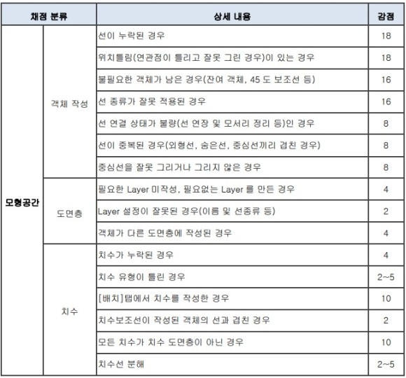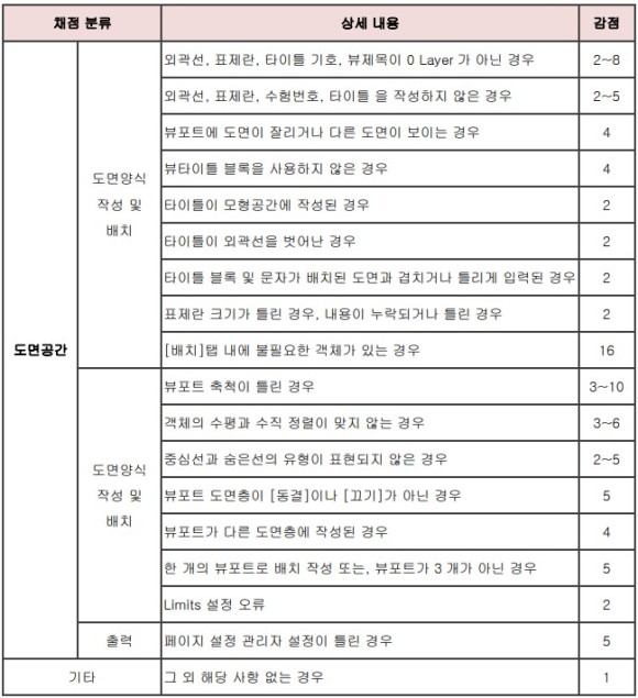 ※ 도면(배치) 공간 감점 내용